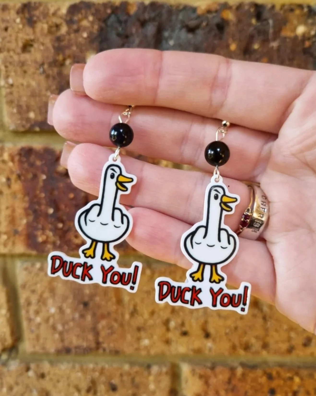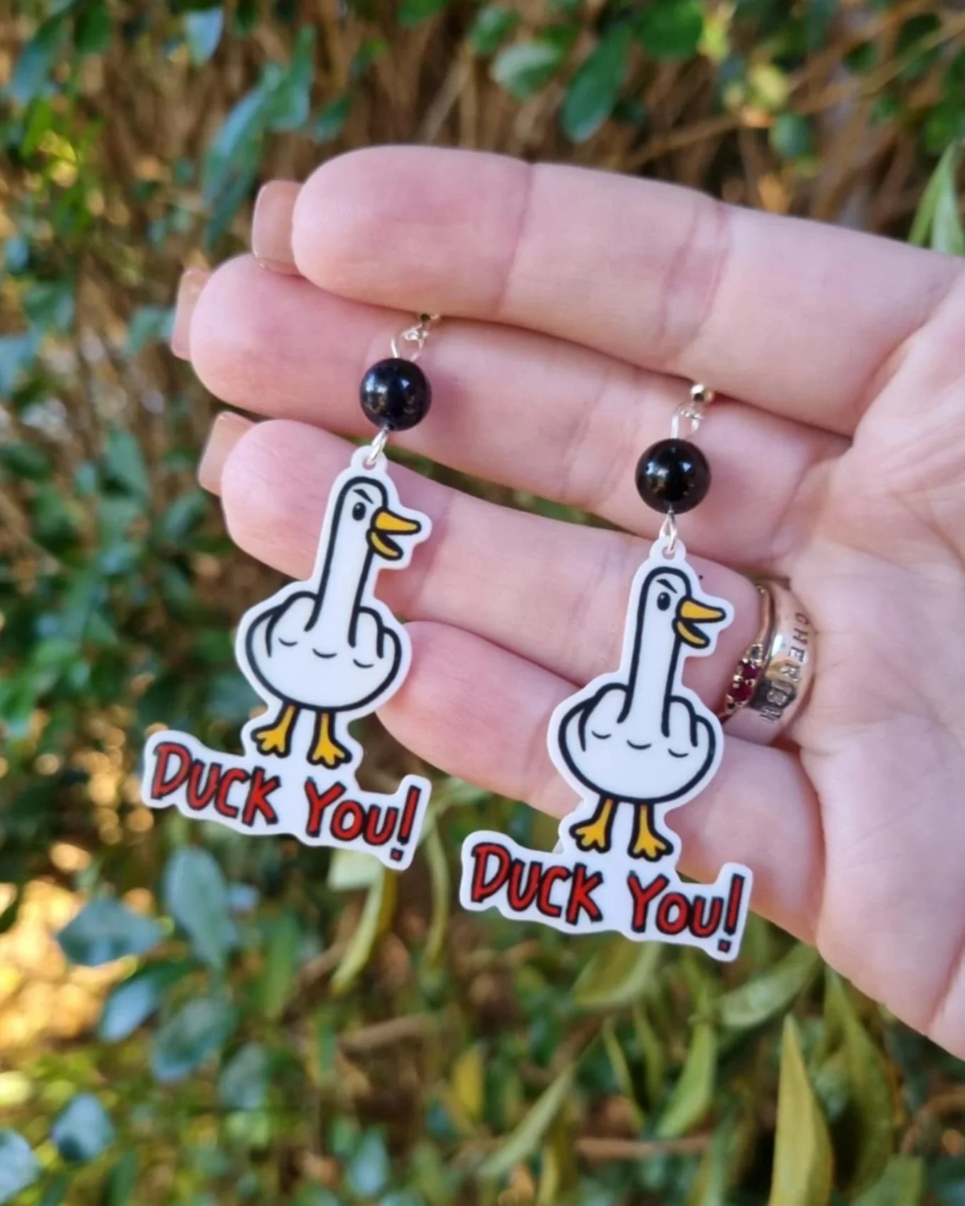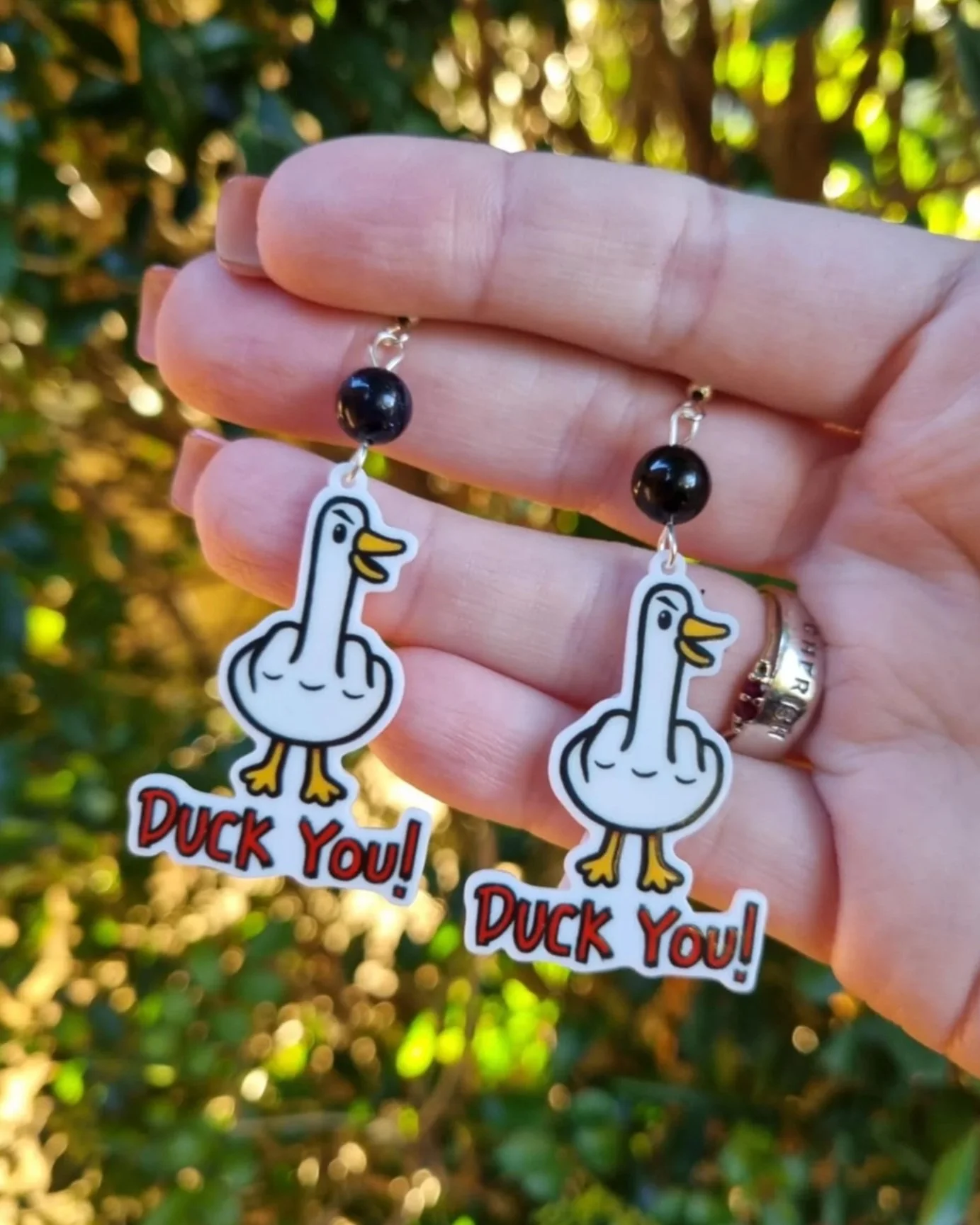 These super cute Black Tourmaline "Duck You" Earrings are wrapped with silver tarnish resistant wire finished with a funny quote Charm. Perfect addition to jewellery box or daily wear with any outfit.